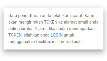Setelah anda berhasil mendaftar, aplikasi akan memberi informasi seperti pada gambar berikut.
