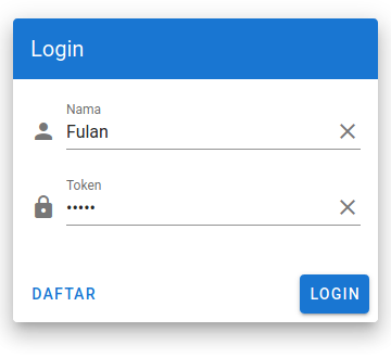 Tahap selanjutnya anda perlu melakukan login dengan mengisi nama anda dan token yang telah anda terima di kotak isian seperti pada gambar berikut.