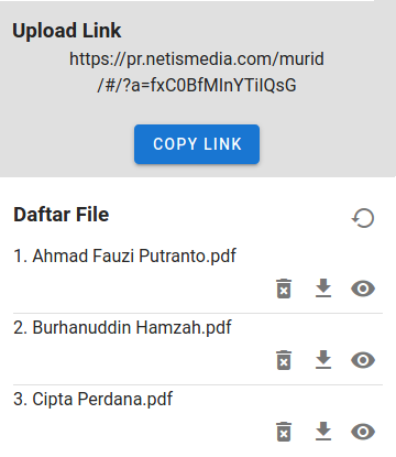Daftar file PDF (berisi foto yang diunggah oleh siswa) dapat anda