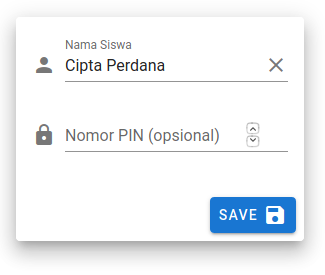 Pertama kali menggunakan aplikasi ini, anda akan diminta memasukkan data nama. Nomor PIN bersifat opsional (tidak harus diisi). Apabila guru memberikan nomor PIN tersebut ke anda, anda harus memasukkannya dalam tahap ini.